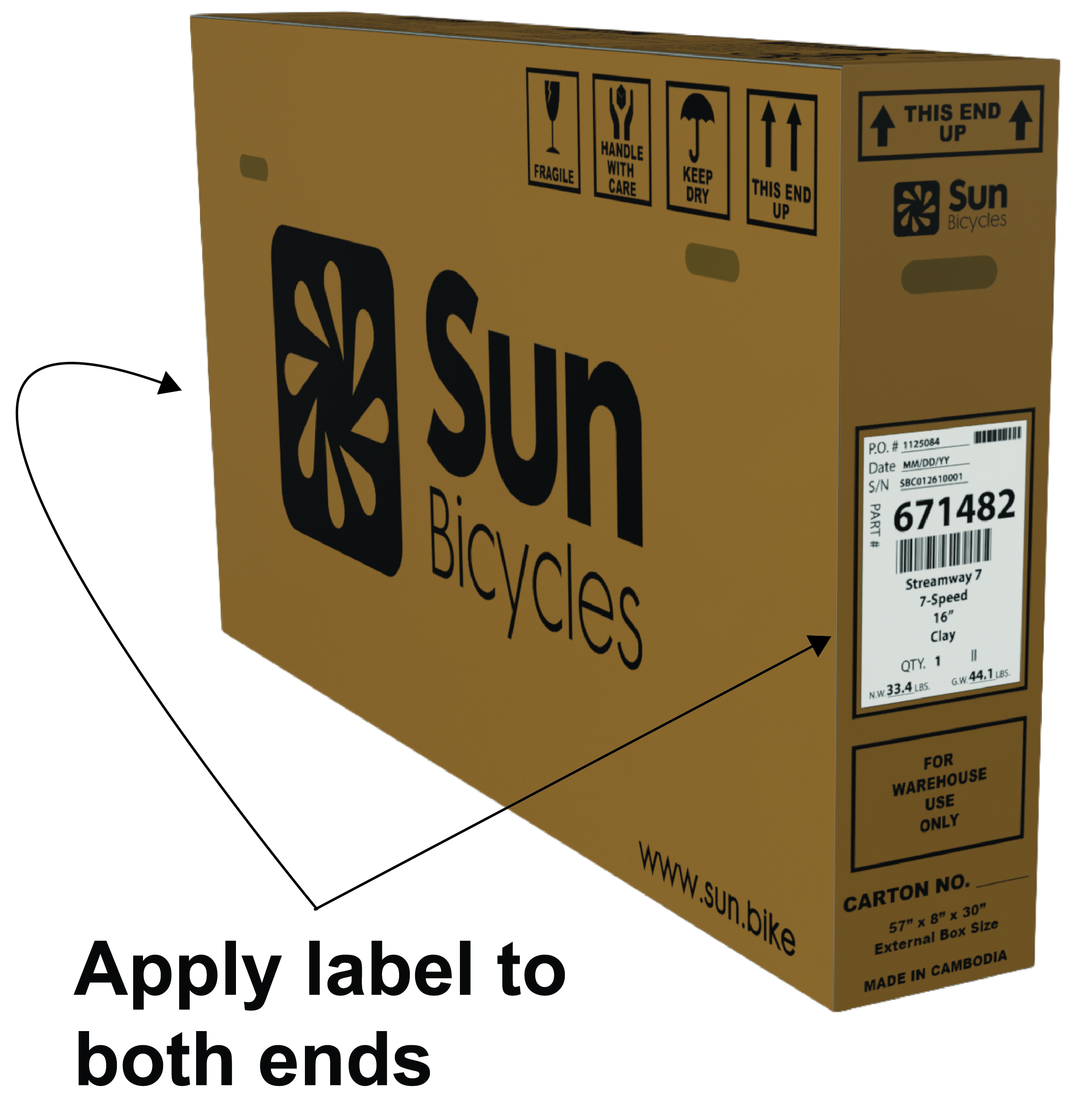 Use the following carton label format for bike cartons. Apply the label to both ends of the carton.